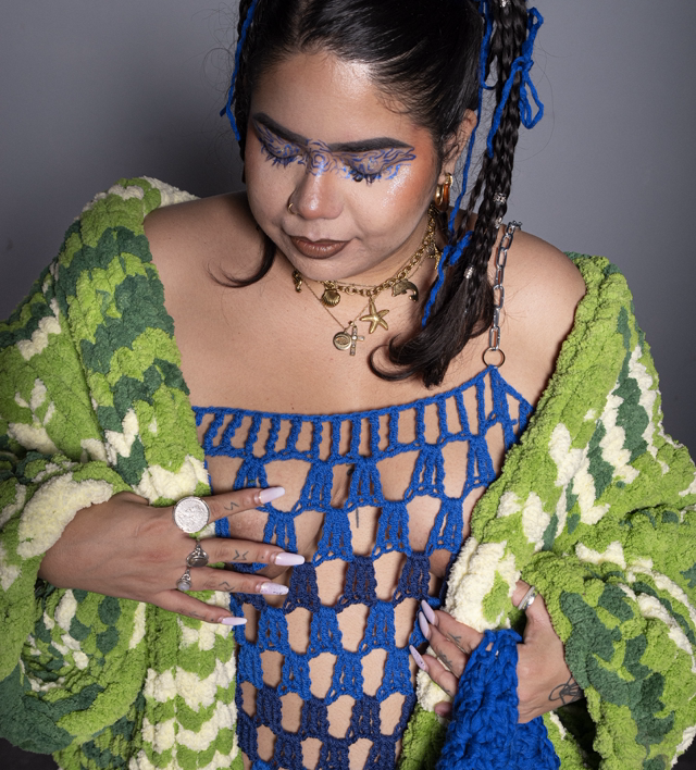 Robe réalisée au crochet avec bretelles chaines en acier.