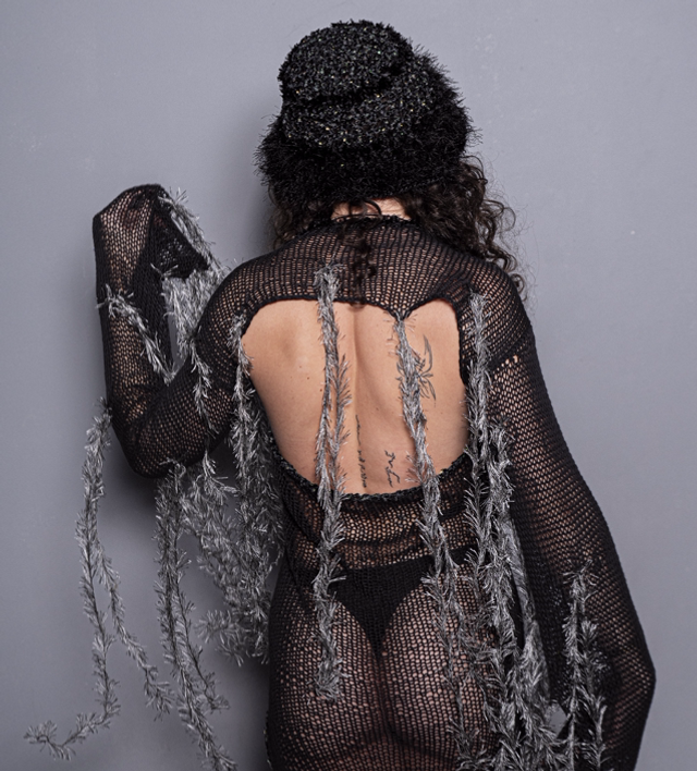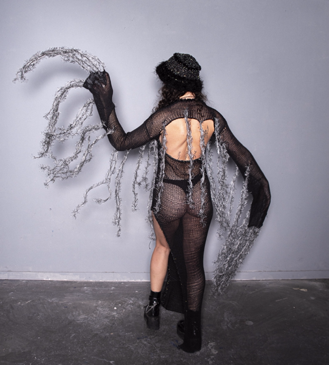 Robe longue fendue + boléro à franges (peut être vendu séparément)