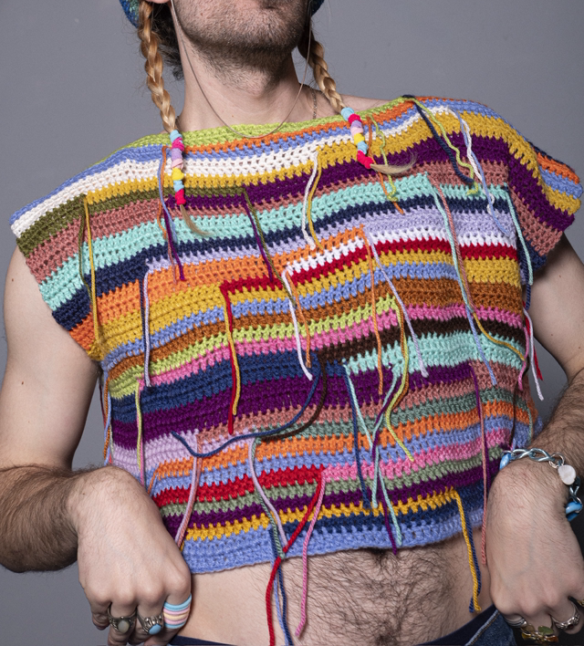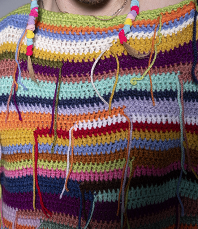 Création réalisée avec des chutes de pelotes de seconde main.